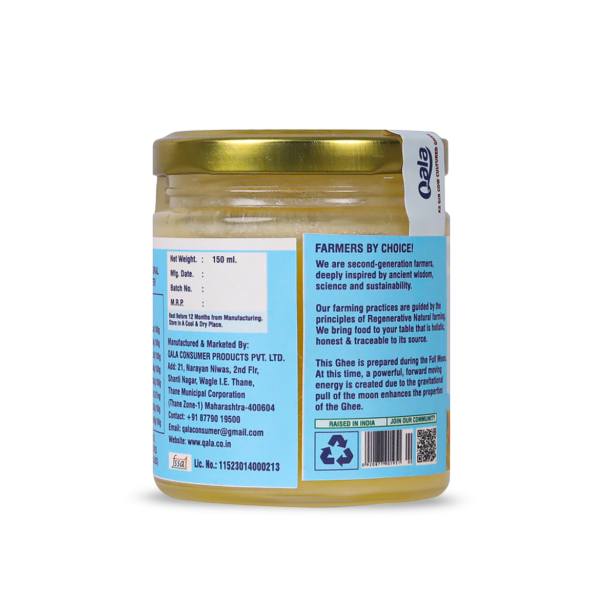 Qala’s A2 Ghee met all the criteria for an amazing ghee. Very good packaging when I received it. It was neat and clean. Premium quality product from Qala Organic I must say. Pure and Value for money.